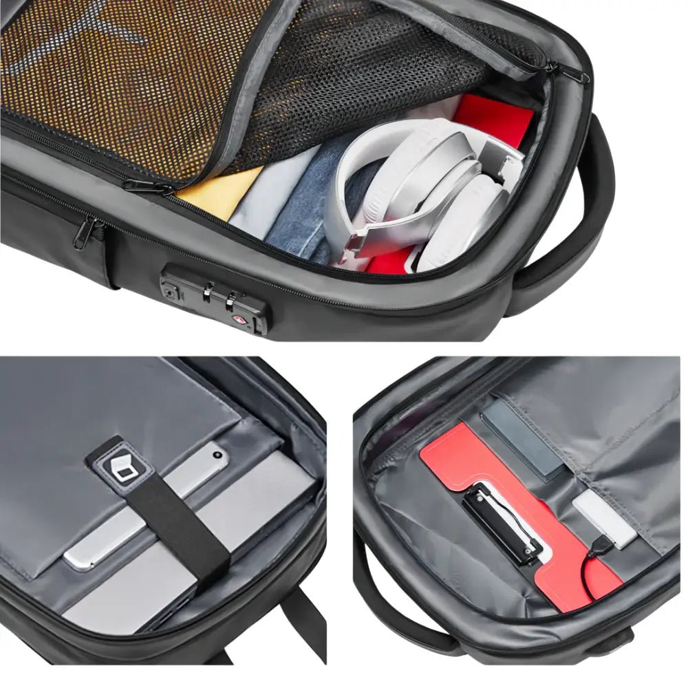 Le design moderne du sac à dos antivol ordinateur 16 pouces – TechShield s’accompagne de fonctionnalités avancées telles qu’un cadenas à code TSA intégré. Cette innovation vous permet de voyager en toute sérénité, vos biens étant protégés des tentatives de vol ou d’ouverture non autorisée.