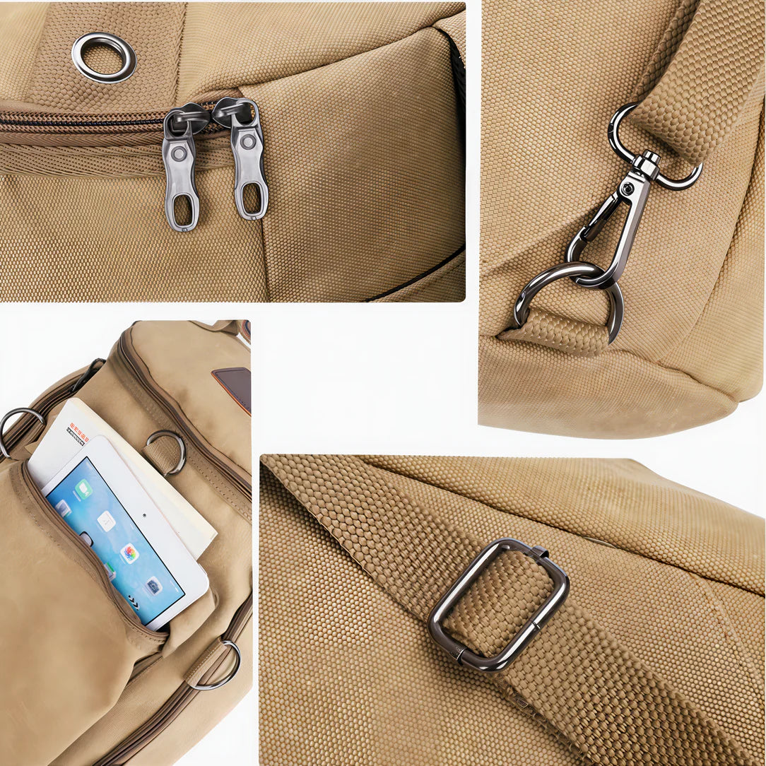 Chaque détail de ce sac à dos de voyage à bandoulière a été pensé pour faciliter vos déplacements. Outre sa capacité généreuse, il propose des compartiments intelligents pour organiser vos essentiels de voyage. Des pochettes zippées aux espaces sécurisés pour vos gadgets électroniques, tout est prévu pour vos besoins.