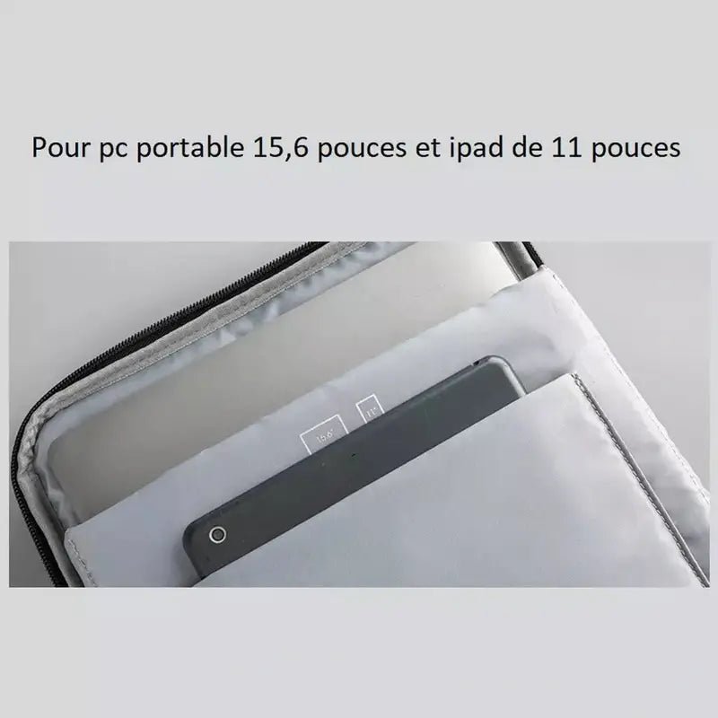 Ce sac intègre un compartiment spécialement conçu pour protéger votre ordinateur portable, garantissant ainsi une sécurité maximale. En déplacement, profitez de son port USB intégré, permettant de recharger vos appareils simplement et rapidement, sans tracas.