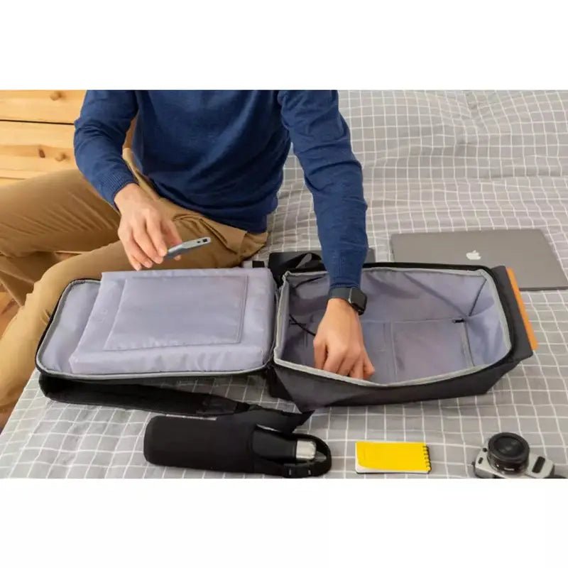 Grâce à une ouverture à 180°, le Sac à dos homme ordinateur 15 pouces vous offre un accès direct et rapide à toutes vos affaires. Transportez l’essentiel de votre univers numérique partout où vous allez, avec la certitude de ne jamais manquer de batterie.