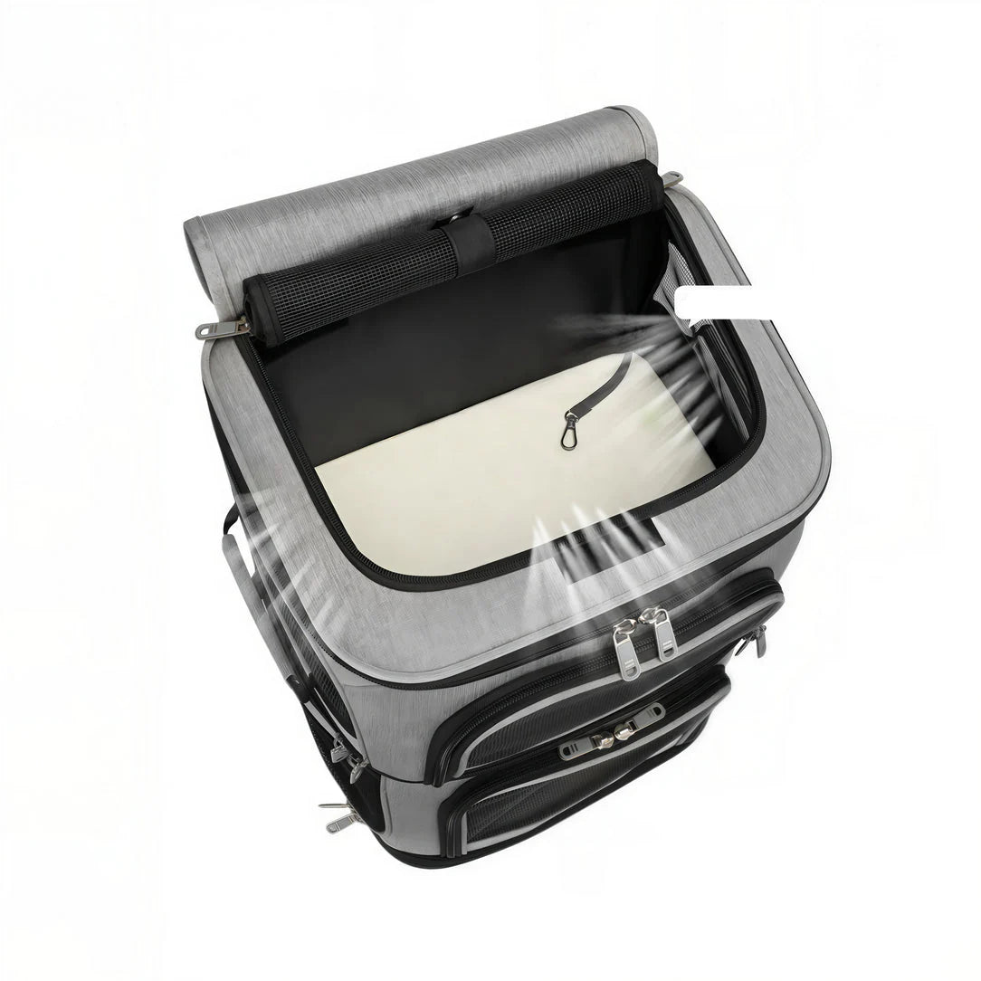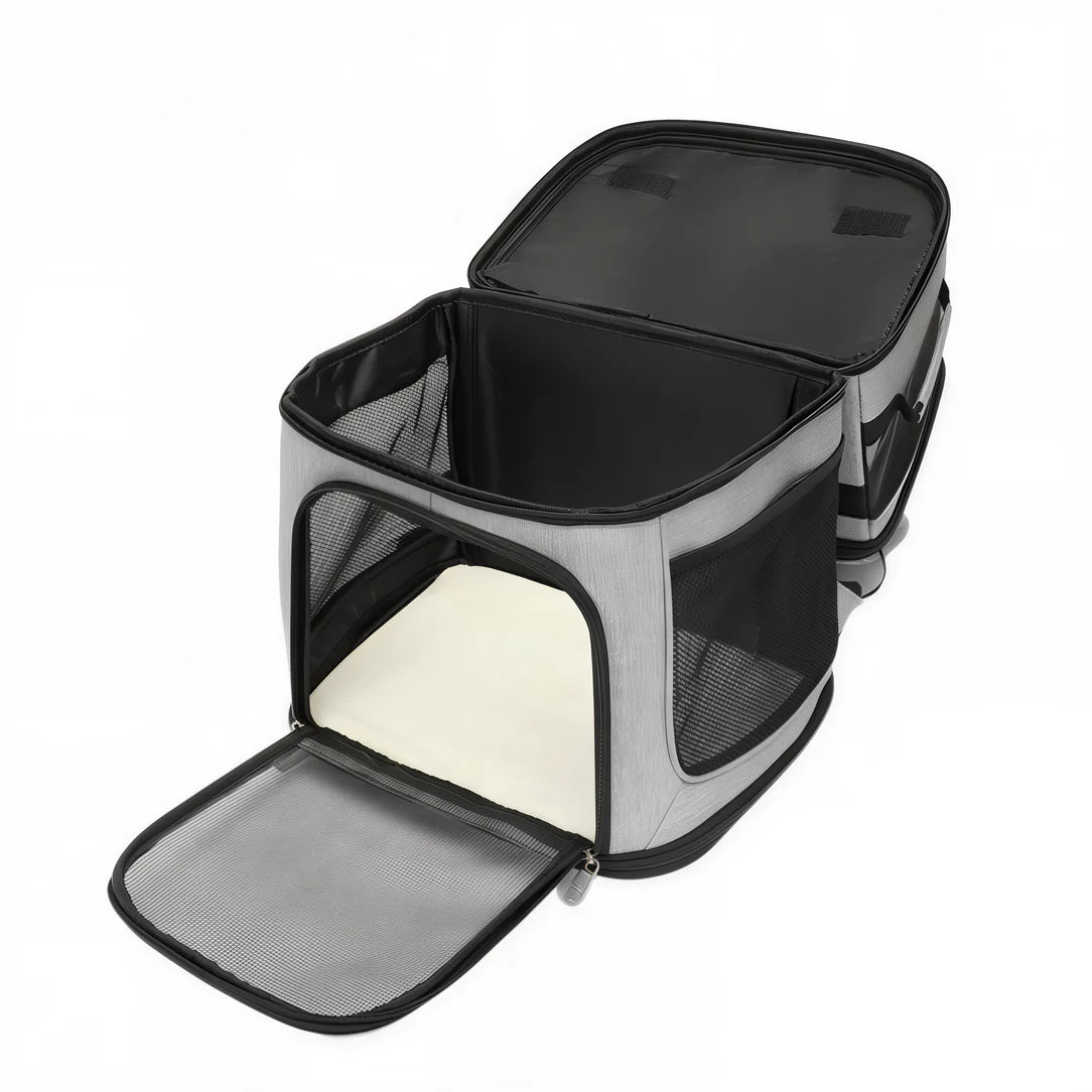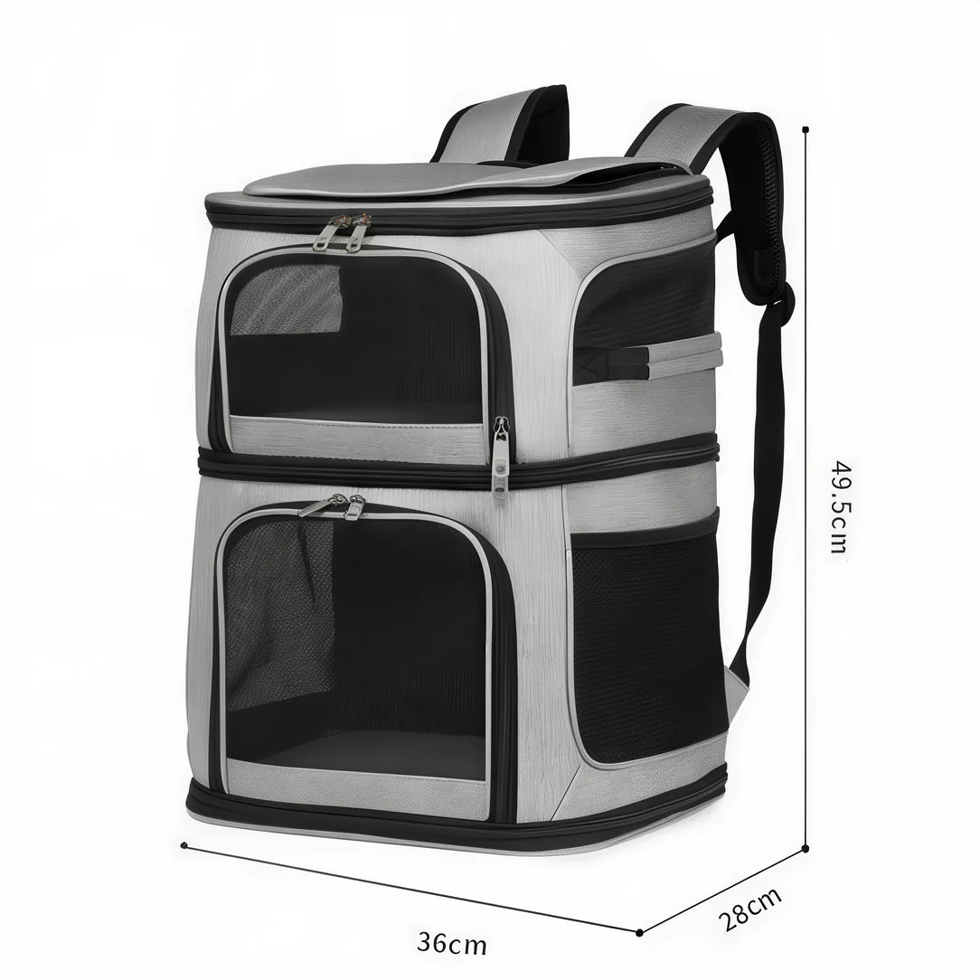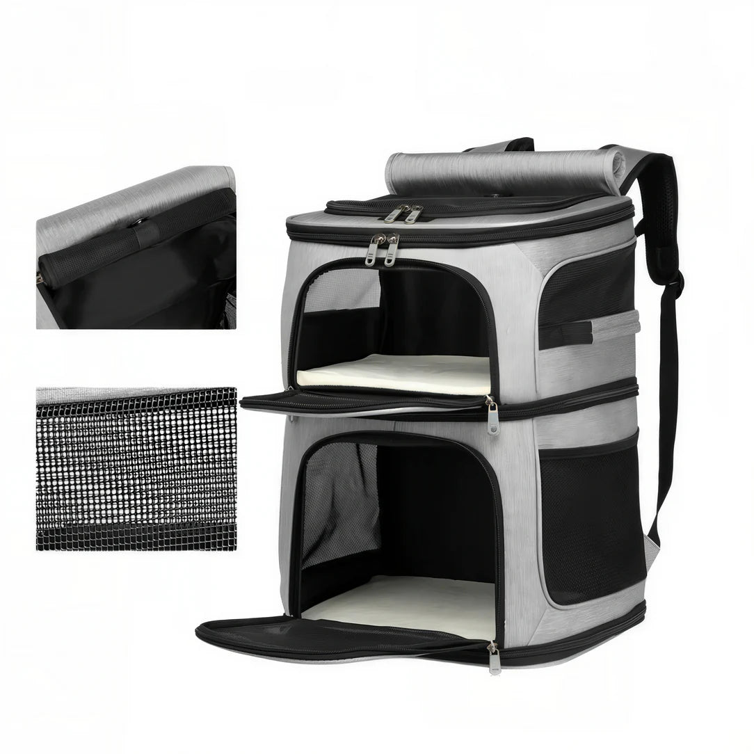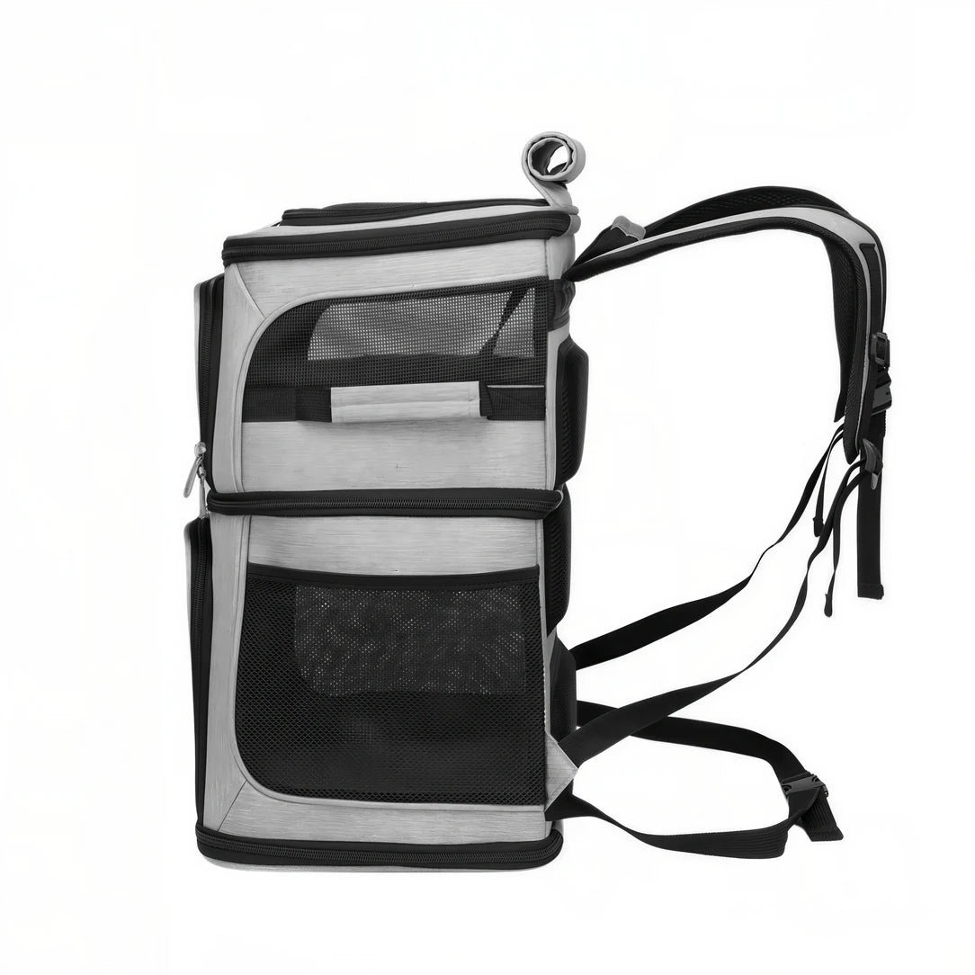 Le Sac de transport double pour chat – Cocoon Duo est équipé de panneaux en maille qui garantissent une ventilation optimale. Vos chats peuvent ainsi profiter d’un environnement aéré et frais, essentiel pour leurs trajets.